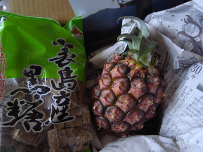いい天気が続きますね。 うちは陽当たりがよいので、天気にめちゃくちゃ影響されます。 8時くらいには暑くて強制的に起こされるのですがね。 作曲っていってもここ2ヶ月くらいは仕事の作曲しかしていないのです。 でも、面白い仕事が続いているので、楽しいですが。 本当はno.9の曲も創りたい。 創りたいけど、創らない。 正直、何を創りたいのか、よく分からないから。 ま、そんな時は 少し距離をおいて、じっくり感じて、色々聞いて、 本を読んで、映画を見て、人と会って、話を聞いて、 お花を植えて、お花を咲かせて、 虫と話して、相談してみよう。 年末に家の更新があるんだけど、少し予定を変えて、 早秋には引っ越しすることにしました。 次のアルバムが生まれるはず。 さて、coffeeでも淹れて、今日も作曲しますか。 とか、書いていたら、 西表のよっしぃから、甘い香りと琉球新報に包まれたパイナポーが届いたっ♪ わーいわーい(≧▽≦)人(≧▽≦)ノ 嬉しいな。 ありがとう。 次の出演は、