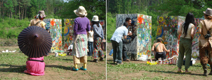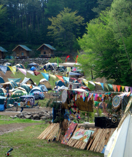極上すぎた。 天気のよい、穏やかな、そして、色鮮やかな、手作りまくりな、 もう言うこと無いパーティー、CAMPS。 全てが最高だったよ。 音もお客さんも植物もみんなが笑ってる感じだったなぁ。 とりあえず、見てよ。 見ちゃってよ♪ CAMPSはさ、hirokiといつも話をしてるから、 人ごととは思えないんだよね。 あーしちゃえば? こーしちゃえば? ってしょっちゅう話してるし、 蟲の響に通じる『お客さんの素晴らしさ』を感じる数少ないパーティーだと思うんだよね。 何処もかしこもこだわってて、 隅々まで愛と思いやりに溢れてる。 ブースは3つ。 メインと森林と丘の上。 中でも森林は気持ち良さそうだったなぁ。 今回はminaとTaoの3人でゆる〜く参加。 でも、DJはめちゃめちゃ気合い入ってて、 朝の最高の時間を心を込めて音を出しましたよ。 DJが終わったので、恒例の呑んで喰ってしゃべって笑って。。。 みんなゆるんゆるん。 中でもCAMPSの味を更に濃厚にしているのが、nejiと姫。 こいつら凄い。 猿回しならぬ、nejiまわし?っていうか、どんな衣装なんだ!?(笑) デコ&チャイ屋の響もDJ。 なぜかイヤフォンでやってた(笑)meggのDJもよかったなぁ。 かわいかったし。(笑) 夜は夜でまた違った表情でいいんだよね。 デコもライトもキャンプファイヤーもあって、なんだか寝るのがもったいない! しかもキャンプファイヤーの周りにはまたお客さんが集まって、 ギターをひいたり、ファイヤーダンスをしたりで、 本当にみんながパーティーを創って行く。 それが一番素敵なことだよね。 んで、めちゃくちゃ良かったPEPE CALIFORNIA ちなみに俺が大好きでhirokiにおすすめしたら、一発で快諾してくれたみたい。 ほんとかっこよかった! ここで、PEPEにあやまっとこう。(笑) ライブでやる曲をDJの時使ってごめんなさい。 んで、CAMPSのもう一つの売りはCAMPS DELI! まぢでうまい。 しかもうまいから人が集まる、笑顔がこぼれる。 ヒロくんの犬「さんぽ」も集まる↓ さんぽはほんといいやつ! なんだかみしらぬ繭にも遭遇。 最後はnejiに急に呼ばれてステージへ。 「キラキラ星」を演奏しようと言われて、あれよあれよとジャムセッションへ。 これがまた楽しかった♪ そして、〆の挨拶。 hirokiくん、感極まって泣いてましたねぇ( ̄ー ̄)ノ∠※ いいよいいよ。 うん、俺も感動した。 minaも俺もブヨにさされまくったけど、それも思い出。 走り回ってたヨネ、メインオーガナイザーのhirokiとテツヤ、 デコのnejiと姫、CAMPS DELIの皆様、それにHACHIの面々、関係者みんなに、 ありがとう!!! 本当に最高だった!!!