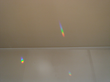 no.9のギタリストでもあるUranとの練習。 とっても穏やかな午後に、ギターのセッションは素敵。 そんなほのぼの空間も練習は厳しい(笑) そこへ、宅急便が到着。 二つの小包、一つは友人のOvaliからお米♪ ちょっとデータを渡したお礼という事で、うれしいぃ〜(≧▽≦)人(≧▽≦)ノ 彼の実家で作っているのかな?これ、美味しいのよね。ほんと。 ありがとう! そして、もう一つはこれまた大切な友人あくたろうから。 小包には『虹』と書いてある。夢のような小包だ♪ そして、これは太陽のエネルギーで下のクリスタルが回るのです! すると、これ写真じゃ伝わらないけど、 部屋は虹色の虫達が徘徊するかのごとく、夢のある空間に!!!!! 素敵でしょぉぉぉー。 ありがとう!!! ほんと、二人に感謝。