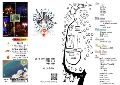 筋肉痛と肩こりがひどい。。。肩こりは滅多にしないんだけど、 日常用の眼鏡を変えたのが原因だと思われます…。 と、老人の戯言はおいといて、 今週はめっきり寒くなってきたのに野外パーティーにてDJです。 代々木公園でのフリーパーティー時代に出会って、 蟲の響でもレジデントの一人としてDJしていたマサトとその仲間たちが、 「レイヴやるんで来てください(キラキラ)」って言うから、 即答で「行く」と答えたw。 当時二十歳くらいだったからそれでも結構大人になっているはず。 ま、マサトは変わらないかw。 しかし、会場もパーティー名もまったく連絡してこないから、 情報が無かったんだけど、ようやく分かりましたので、お知らせします! もしレイヴ大好きとか、 静岡の山に住んでますとか、 寒いの大好きマゾとか、 是非来てください( ̄ε ̄) って、ひ…ひ…一二三が出てるぅぅぅーーー♪ 先週大阪でご一緒して、1年前から大ファンです(笑) めっちゃくちゃ素敵な演奏するんだもん。 うれしぃーなぁー。 Circulation Camp 2010 http://c-camp.abacha.jp/ 日程 Oct 22(fri) 23(sat) 24(sun) 場所 掛川市 天手古舞キャンプ場 ● Live 一二三 じぶこん ikorih buenas DIG DUG okku ● Berry dance ARABIAN NIGHT + tetchan!(darubuka) naomi + stillpoint ● Performance Kintaro (juggling) 蛮火炎 (Fire) 酔月 (ikorih) ● Lamp Deco 遊楽民 ● Flower Deco Tsugaya Orchid ● Candle Deco shakara ちろりろうそく ● Djs no.9(liquid note records) Timothy really showcase Sisi Ryujiro Tamaki tosi NGtom y.、Kon mazaltob (C-Camp) Pine (cycle) kazu (coexist) ababa (C-Camp) noda (こもれび) TATSUSHO (NOROSHI) Toki @taru(C-Camp) and more... 帰ってきたら、来週はいよいよ京都でDJだぬーーーん♪ PR たっのしかったぁー(≧▽≦)人(≧▽≦)ノ