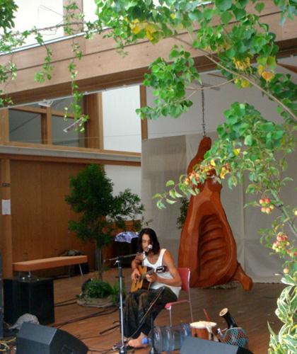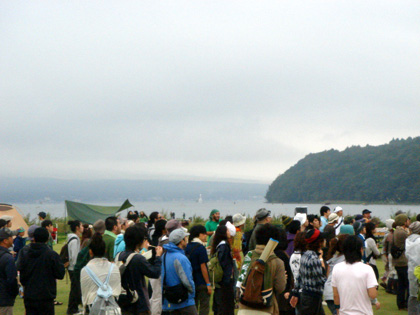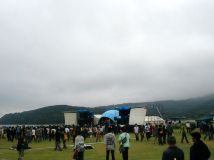 やってきました♪ Sense of Wonder!!! あいにくの天気でしたが、とても素晴らしいフェスでしたよ。 みんなちょっと寒いのが辛そうだったけど、 それは僕らも同じ。 演奏までの2日間をちょっと回想してみようかな。 出発は前日のお昼。 メンバー全員とmichiくんなど合計9人を2台に、機材もピアノも積み込んで、 なぜかテントとか寝袋とかも持って、ウキウキ出発。 三連休の初日とあって、混雑を予想したけど、そうでもなかったな。 なんだかんだと夕方6時くらいに到着。 途中、富士山にもお目にかかれたし、天気のよい明日を夢見て、 最高の気分。 さっそくリハーサルを行って、 と言っても僕はリハーサルは音のバランスをとる以外はやりたくない派。 あまりリハがうまく行き過ぎると当日なぜか失敗するし。 なので、一曲だけ披露して終わり。 っていうか、バイオリンのふぅちゃんはリハ中「ビ〜ル♪ビ〜ルっ♪」って、 飲む事しか考えてないし(汗) で、早速会場の道ばたで宴会(笑) 自前のマイコーヒーフルセットを常に持ち歩く俺は、 ビールとうまい珈琲と花火という至福セット♪ と、ここで不安が的中。 やかん・ドリッパー・サーバー・カップ・新潟から取り寄せたうまい豆…。 フ…フィルターが無ーーーーーーいΣ ( ̄□ ̄; そこでmichiくんの奥さんなほみちゃんの提案でスタバの紙を使って、 臨時フィルター。 見かけは悪いけど、これがなかなかいけるんだ。 あぁ、あせった。 このイベント一番の忘れ物だったな。 と、ここで、要注意。 この公演は花火禁止です。(知らなかったの!) で、早速管理の方に怒られ、 さらに電気まで消されて、会場の外へ追い出される。。。。 飲み足りないので、急遽決まった民宿へ。 で、やっぱりがんがん呑む。 何を話したのかもさっぱり覚えてないけど。 っていうか、うちのメンバーは女の子二人が恐ろしく酒豪なんです(-、-υ) 片方は軽くアル中だし(笑) するとなぜかこの民宿、 朝6時に大音量で 「朝ご飯でーーーす、朝ご飯でーーーーす」( ー"ー;)!! 朝6時って… 強引に朝ご飯を食べて、 二度寝(笑) ライブまでかなり時間があるので、 出来るだけ気を鎮めて、落ち着いて会場に行きたいので、 ゆっくり出発。 外は雲の中、気温は17度くらい。 肌寒いし、今にも雨が降りそうな会場にはすでに長蛇の列。 まずはAOさんがPAをつとめるフロアへ。 ここは晴れていたら本当に素敵なフロアだったんだろうなぁ。 芝生の広場に、真横は湖畔。 目の前には富士山と最高のロケーション。 そして、もうひとつのステージでGENちゃんがやっていた。 なんだかメルヘンでかわいい世界。 そこになぜか完成度の高い『肉』がぶら下がっている。 最後まで謎だったけど、途中からその『肉』に異常に愛着を感じましたw。 そして、メインではスチャダラパーとUAが。 これはどちらも衝撃だった。 UAの声は、どこまでも届く。 心の奥までも届く。 これが凄いと言われる由縁かと一瞬で引き込まれました。 UAはやっぱりUAで、素晴らしい世界を創りだします。 この辺から集中モードに入ったので、 写真も無く、 とにかく身体を温めて、気持ちを研ぎすまし、 音楽を楽しもうという気持ちと、 早く音が出したいという気持ちを高めて行く。 それが僕の世界だから。 音が悪いけど(低音全くないし)、 他のステージがかぶってるけど、気にしないでくださいな。 no.9 LIVE @ Sense of Wonder 2007 [ Good morning ] no.9 LIVE @ Sense of Wonder 2007 [ The Friend comes from east ] 今年初めて開催された[ Sense of Wonder ] ー あなたはまだここを知らない ー というサブタイトル通り、知らない世界をいくつも体験出来たし、 企画も運営も大変だったと思うけど、 近い将来、このイベントは大きな影響を与えると思う。 天気が悪かったのは、 次はもっと凄いっていう事だと思う。 僕はここに居れて幸せだった。 スタッフ、関係者の皆様、出演者、 そして、来てくれた皆様に心から感謝致します。 ありがとう。 また来年。(どうしても出たいw) ついに今週末はSense of Wonder。