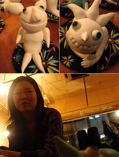 音楽、映像、彫刻、絵画…。 その中でも異彩を放つ不思議ワールドを創り上げる『悦』。 彼女の個展に行ってまいりました。 凄い 楽しい。愉しい。 (↑この二つの言葉はどう違うんだろ?悦の場合、絶対、愉しい。) さぁ、どうぞ、悦の世界へ♪ 本物はもっとおしゃべりしそうで、もっと動きがあったけど、 写真だとうまく伝わらないかも。。。 作家の悦と妖精。 実は作家の悦は学校の先生。 子供達に見せても全く怖がられなかったとか。 子供と同じ目線で見れるって素晴らしくない? そして、彼女のルーツは宗教美術からきているらしい。 曼荼羅や宗教絵画から、この世界に至るところに人間のフィルターの複雑さを感じましたね。 PR blogっていいかも。