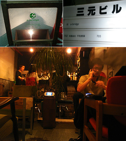 でも、忙しいからって忙しいに溺れるのは嫌いなんだな。 それでもがんばって時間を創ってでも、 美味しい珈琲をゆっくりいただくひとときが自分にはとても大切。 そういう時間に日々アイデアは出てくるから。 昨日は、 伝説の友人のマガリさん(ネバダのバーニングマンにチャリンコで行った男w)の紹介で繋がった、 渋谷の裏の小さなお店『アナグラム』へCDを届けにいきました。 名前からも連想できる表通りになさそうな雰囲気と、 マガリさんというキーワードにぴったりwの 裏路地のマンションの一室というロケーション。 でも、店内は奇麗でセンスのある、オリジナルの服や、輸入ものの靴やCDなど あきらかにそこでしか売っていない、素敵なお店。 場所柄、仲間達も集まれて初めてでも居心地の良い空間に、 前田さんという人柄のいいオーナーがもてなしてくれる。 CDもちゃっかり置いてもらってます♪ 偶然、この前田さんというオーナーは、 僕の友人でもある元レーベルメイト、今や世界中で活躍するアーティスト、World's End Girlfriendの実の兄だったのにはびっくり!ほんと世間は狭い。 その後、すぐ近くに最近OPENした友人関くんのBARに立ち寄る。 本人これまたあつくてまっすぐな良い男♪ 店もいいのでみんな立ち寄ってぇー!って、店の名前が分からない(汗)聞いとく。 と、表参道で大切な仕事の打ち合せのため時間もなかったのですぐに次へ。 とても面白い興奮する仕事をいただいて、また忙しくなりそうだけど、 早く完成させて、みんなに見てもらいたい。 コレほんとヤバいから。( ̄ー+ ̄)ニヤリ そして、ようやく終了。 hirokiを誘って、最近めちゃくちゃ行きたかった三軒茶屋のカフェへ直行。 木歌ちゃんという歌い手の女性に聞いて知った 『a-bridge』というカフェは三軒茶屋の駅前にあるのにカフェ好きの俺が知らなかった事がシュック。 でも、行ってみたらこれは知らないはずだ…。 場末の路地を入って、いわゆる卑猥な空気の雑居ビルの最上階にそこは在る。 下水のにおいがもの凄くて、全員息を止めて8Fへ。 ちょうど死ぬ寸前くらいで到着するので、これまたパラダイス(笑) うん、素敵なカフェだ。 夏は屋上のテラスでも呑めるし、珈琲もまぁまぁ。 三軒茶屋に来た時はいいかもよ。 なぜか至る所にPSPが置いてあって、ワンセグが見れます。これ、いらないと思う。 『a-bridge』 http://www.a-bridge.jp/ エーブリッヂ 東京都世田谷区三軒茶屋2-14-12 三元ビルRF TEL : 03+3418+5013 営業時間 : 15:00〜27:00 日曜・祝日 : 15:00〜24:00 定休 : 水曜日