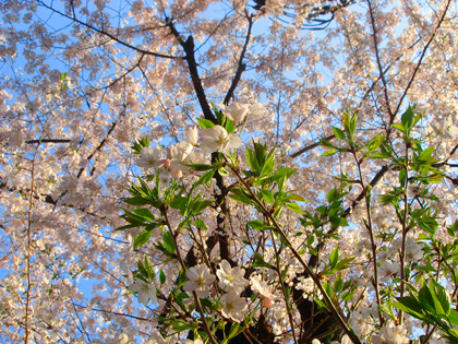 TRI-BUTE@ageHaに行ってきましたー。 彼等の本当に地道な活動は見ていても着実に進化しちゃって、 今や本当に凄いパーティーになってた。 ageHaのメインでやるってことがどれだけ凄い事か。 まぁ、あいつらはそれが大好きで熱い心を持っているから、 そこまでいってるんだろうね。 まだまだこれからも期待のパーティーです。 しかぁぁーし、ageHaさん「デジカメ禁止」はないでっす。 と、いうことで。 桜の季節ですね。 桜が満開になると、誰もがちょっと浮かれた気分になるのは頷ける。 街はピンクに染まり、 風が吹くたびに雪が降る。 緑とのコントラストも心地良い。 桜には色々な楽しみ方がありますよね。 普通に公園を歩いてもよし、 地面に寝転がって、下から空ごと眺めるもよし、 日本酒が好きな人は、おちょこに花びらを一枚なんて楽しみ方もある。 でも、俺は通称『おっちょこちょい桜」が好き(笑) まだ全然咲いてないのに、ひとり先走って咲いちゃうあいつ。 枝じゃなくて、幹の根元の方で、パッかぁ〜って開いちゃうあいつ。 「よっしゃー春だぁぁぁー。(≧▽≦)人(≧▽≦)ノ」 「俺一番じゃね?( ̄ー+ ̄)ニヤリ」 「ぺかっ(*^▽')」 しかし、 ∑(T_T;う"っ、ま…まだ寒いじゃん。。。って、先に散っちゃうし(†∩†) そういうドラマを密かに妄想しております♪ そして、最初に葉桜になるのです。。。 そんな中に花びらが6枚の進化の形跡を発見♪ 明日は東京の桜もピークかな。 代々木公園に出かけよう♪ おっと、その前に今晩はAir@代官山にてDJです。 花見の帰りにでも遊びにきてね♪ なんだかバタバタしていて忙しい。