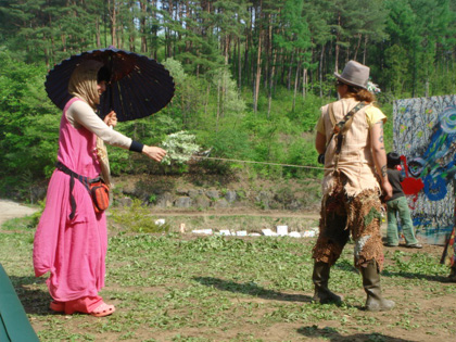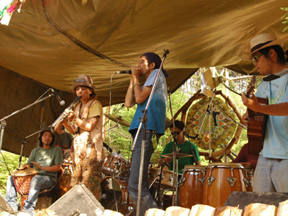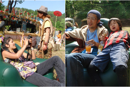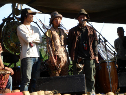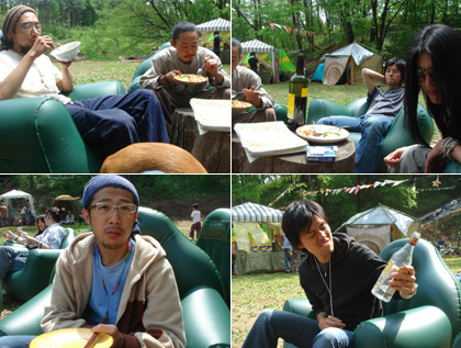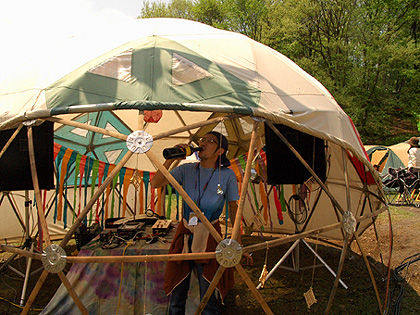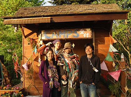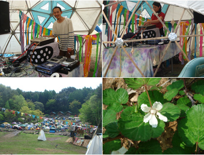 極上すぎた。 天気のよい、穏やかな、そして、色鮮やかな、手作りまくりな、 もう言うこと無いパーティー、CAMPS。 全てが最高だったよ。 音もお客さんも植物もみんなが笑ってる感じだったなぁ。 とりあえず、見てよ。 見ちゃってよ♪ CAMPSはさ、hirokiといつも話をしてるから、 人ごととは思えないんだよね。 あーしちゃえば? こーしちゃえば? ってしょっちゅう話してるし、 蟲の響に通じる『お客さんの素晴らしさ』を感じる数少ないパーティーだと思うんだよね。 何処もかしこもこだわってて、 隅々まで愛と思いやりに溢れてる。 ブースは3つ。 メインと森林と丘の上。 中でも森林は気持ち良さそうだったなぁ。 今回はminaとTaoの3人でゆる〜く参加。 でも、DJはめちゃめちゃ気合い入ってて、 朝の最高の時間を心を込めて音を出しましたよ。 DJが終わったので、恒例の呑んで喰ってしゃべって笑って。。。 みんなゆるんゆるん。 中でもCAMPSの味を更に濃厚にしているのが、nejiと姫。 こいつら凄い。 猿回しならぬ、nejiまわし?っていうか、どんな衣装なんだ!?(笑) デコ&チャイ屋の響もDJ。 なぜかイヤフォンでやってた(笑)meggのDJもよかったなぁ。 かわいかったし。(笑) 夜は夜でまた違った表情でいいんだよね。 デコもライトもキャンプファイヤーもあって、なんだか寝るのがもったいない! しかもキャンプファイヤーの周りにはまたお客さんが集まって、 ギターをひいたり、ファイヤーダンスをしたりで、 本当にみんながパーティーを創って行く。 それが一番素敵なことだよね。 んで、めちゃくちゃ良かったPEPE CALIFORNIA ちなみに俺が大好きでhirokiにおすすめしたら、一発で快諾してくれたみたい。 ほんとかっこよかった! ここで、PEPEにあやまっとこう。(笑) ライブでやる曲をDJの時使ってごめんなさい。 んで、CAMPSのもう一つの売りはCAMPS DELI! まぢでうまい。 しかもうまいから人が集まる、笑顔がこぼれる。 ヒロくんの犬「さんぽ」も集まる↓ さんぽはほんといいやつ! なんだかみしらぬ繭にも遭遇。 最後はnejiに急に呼ばれてステージへ。 「キラキラ星」を演奏しようと言われて、あれよあれよとジャムセッションへ。 これがまた楽しかった♪ そして、〆の挨拶。 hirokiくん、感極まって泣いてましたねぇ( ̄ー ̄)ノ∠※ いいよいいよ。 うん、俺も感動した。 minaも俺もブヨにさされまくったけど、それも思い出。 走り回ってたヨネ、メインオーガナイザーのhirokiとテツヤ、 デコのnejiと姫、CAMPS DELIの皆様、それにHACHIの面々、関係者みんなに、 ありがとう!!! 本当に最高だった!!! 映像作家のmichiとnahomiちゃんの披露宴というか、お披露目会に行ってきました。