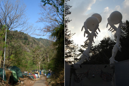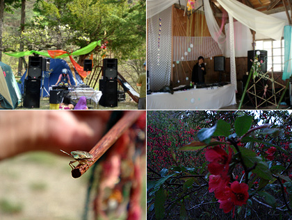 長野は今が初春を迎えたばかりだった。 桜が咲き、 新芽が芽吹き、 雪解け水が流れる。 でも、朝の凛とした空気はとても気持ちよかったよ。 と、いうことで、行ってきました。 Heaven's Door 2007 spring @ 長野野田平キャンプ場へ Heaven's Doorは 僕らのやっていた『蟲の響』と同じ世代の パーティー好きな大人達が今でもやっている数少ないパーティー。 それだけにちょっとした思い入れもあるし、 やっていることの大変さも、凄さも、素晴らしさもわかる。 それに今回は本当に多くのお客さんが来て、スケールも大きくなってたので、 なんだか嬉しかったなぁ。 ステージは全部で3つ。 さらに昼間はno.9もDJした野外特設のブースもある。 下の写真は、左が廃校の体育館を使用したチルブース。 右はサイケデリックトランス中心の3rdフロアの前のろうそく。 カノヤプロジェクトのデコはいつもほんと素晴らしい! こちらはメインのブース。 デコはモッチー率いる雪月華かな。 全部素晴らしかったけど、長野の自然もやっぱり素敵だね。 パーティーは音も空間も楽しいけど、 美味しいものを食べたり、友達と遊んだり語ったり、 自然と戯れたり、やることいっぱい♪ ちなみにDJしたんだけど、写真ないので(泣) メインフロアの横には清流が流れる。 誰かが遊んだ後を見て、ちょっと微笑ましい…。 蟲の響の相方minaが今回はオフィシャルBARを担当。 maiちゃん、maya&ken、taroちゃん&ゆきぽん、ソウキ、momi、 それに一緒に行った、たくろう&ACOちゃん&SHO-HEYおつかれ! ほとんど、BARで呑んだくれてましたねぇ。 だって、前がVJブースなんだけど、 Szkさんと大房さんはずっと呑んでるし、 吉田っちはずーーーーっとバーベキューしてるし、 たなちゅもずっと喰ってるし、 ゲンメイに、Isaさんに、Noriくんに、moaくんに、やまち、あきこ、こまちん、ボブ船長、タダジー、Fran、もっちに、ミヤに、きもとゆみ、cabに、ヒデキチに、 あとはよくわかんないけど(笑)いっぱい。 ずっと人が集まってるから楽しくて楽しくて♪ 久々のサイケやハードテクノに踊りつつ、 なんだか懐かしい気分も、ほのぼのした気分も味わいつつ、 とってもとっても素晴らしいパーティーだったよ。 オーガナイザーのNOISEさんを初め、 多くのスタッフのみんなおつかれさま! ありがとう。 PR