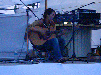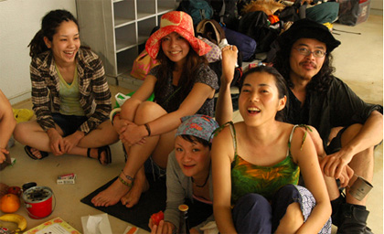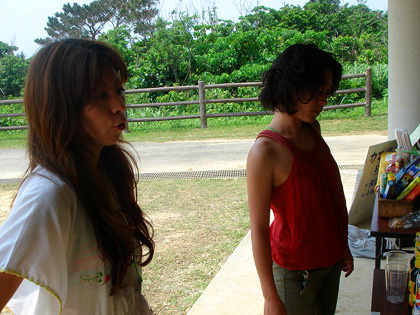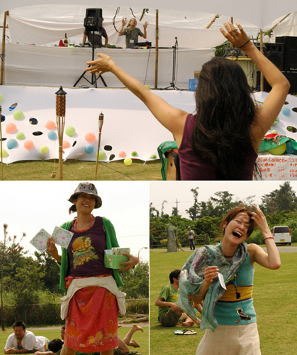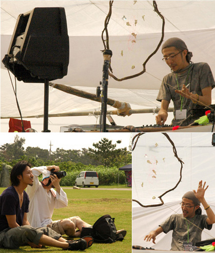 part2 >> part3 >> part4 >> まだまだ続く西表。(汗) まぁ、後少しです。 いよいよ西表在住のIKKEIくんとよっしぃ達のパーティー。 秘祭(サトウキビ祭り) 西表では内地の人が何かをやるっていうことがとても大変。 やはり島国の人は新しい人たちの乱入はとても不安なものだから、 信頼し、愛されて初めて新しいことにチャレンジできる。 そんな環境でアツい想いをもったIKKEIくんは在住7年目。 新しい祭りを提案しようと、何度も交渉し、ようやく町の人たちの理解を得た。 おばあとおじいの小さな最果ての地で、そのパーティーは始まった。 手作りで、心がこもってて、日本中から来たみんなの愛があるイベントだったよ。 この日から蟲の響の仲間達、momiや山頂瞑想茶屋ことsinとmakiちゃん、 ダットマフィアのseiji animaminimalやらみんなが参加。 一番笑ったのは奄美に住んでいるreinarにminaが電話。 今から行くーと那覇経由で到着。そんな近いかっ!? こんな最果ての地で逢うとまたあがるんだわ。 初日はカマチ☆リカちゃんのライブ。 本当に素敵な唄を歌う人です! ずっと会いたかった人だし、逢えて嬉しかったなぁ。 ほんと素敵なライブだったよ。 祭が始まると、そこは酒豪達の島。 泡盛、ワイン、ビールと次々と出てくる(汗) みーんな人懐っこくて、良い奴らがいっぱい。 笑顔と太陽と音楽で酔っぱらわなーい。。。と、思ったが、 泥酔(笑)で、写真もほとんど無いです。。。 次の日は自分のDJ。 もうね、楽しくて楽しくて、気持ちよくって、蝶が舞って♪ ここ最近でもほんと最高のDJをさせてもらって感謝です。 (mina、写真借りるね) こちらでも詳細がアップされています。 minaの喜怒哀楽楽日記 ほんとみんなの笑顔が次の曲を教えてくれる感覚。 お酒を差し入れされてさらに上がり、呑む呑む。 気持ちよい時間。 ありがとう♪ 夕方にはmomiのDJ momiはROCKを多くかけるけど、野外にはまるんだよね。 DJしてるとき、やたらかっこいいし。 最後のJimi Hendrixの『little wing』はまさに青春の一曲。 ちょうどその時、沖縄の若い男の子とアツく語っていた最中だったから、 余計に感動したよ。 そして、よっしぃに急遽交代。 30分だけのよっしぃーワールド!!!! no.9も脱帽の最高で、破天荒な選曲は神がかってた。 安田成美の風の谷のナウシカwから始まり、 ディズニーのエレクトリカルパレード(HOUSE MIX) UA、山根麻衣さん、カマチ☆リカ、奥田民生と井上陽水の「ありがとう」 こんなDJがいるかぁぁぁぁーーーー。 でも、正直泣きそうになったよ。 ありがとう。 で、さらに山頂瞑想茶屋ことSINのDJ。 あーだ、こーだ言ってたけど楽しんじゃってる、 楽しむ天才。sin。 めっちゃくちゃいけてるトライバルから、サイケへ。 「早くあげろあげろ↑」と言われつつ、あげまくる。 最後には懐かしいDELTAとかかけちゃって、最高だったよ。 で、また呑む。 寝る。 寝てたら雨が降って来てテントが浸水(笑) 寝袋にはかたつむり。 のぼけ眼で荷物を運ぶと、 フロアでは蟲の響の仲間、seijianimaminimalがぐにゃんぐにゃんのトランスをかけている(笑) すごい早い。(汗) せいじぃーーーーーと叫ぶも、撃沈。 朝からぼーっっと、珈琲を入れる。 ちなみに沖縄には、マイポット、マイサーバ、お気に入りの豆、マイカップすべて持っていきました。 みんなに珈琲を何杯も振る舞って、 チョコ食べたり、野菜を食べたり、 笑ったり、笑ったり。 そして、また笑って。ひひひ。 とってもあったかい、素敵な祭でした♪ IKKEIくん、よっしぃ、地元のみんな、ありがとう。