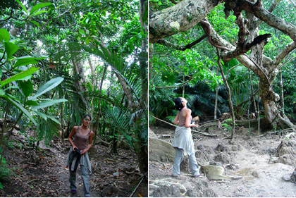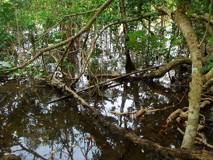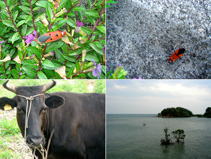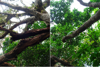 part2 >> part3 >> part4 >> part5 >> 西表用ミュージックはここをくりっく! まだまだ浸ってる、西表ネタ。 まーだ終わらない(汗) まぁ、想い出ってことで。 5日目はマングローブ探検と散策。 みんなは温泉へ。 俺とminaだけ温泉より、探検と散策を開始! 数時間行ってたのに、あっちこっち興味あり過ぎで全く進まず(笑) 隣の集落で日没。 マングローブとは川岸に根を下ろす植物全般を示すそうで、 マングローブという植物はない。 この場所も湿地帯でヤエヤマヒルギという植物がなんとも不思議な世界を創りだす。 湿地帯にはこんな↓穴が無数にあいてたけど、カニ? かわいくない?↓ 葉っぱがつやっつやしてた。なんかワクワク♪ 壁のように縦に高い根っこが凄い。 上を見上げると、様々な植物が太陽を求めて入り組む。 沖縄は台風が凄いので、それの影響もあるみたい。 植物が大きいので、下にはあまり太陽が入って来ないんだなぁ。 したにはあまり植物が無かった。 でもね、小さな沼には小さなトビハゼがぴょこぴょこと。生トビハゼ初めて見たっ! めっちゃかわいい。(写真無し) この後行った大きな川はなんとも壮大だった。 そこも写真が無いけど、風があまりに気持ちよくて、一面に広がる熱帯雨林の匂いがした。 とっても大きな世界と、緩やかな大河。 ゆっくりと歩いて、小さな虫や近所の人と挨拶しながら、 ゆっくりゆっくり進む。 なんか良い時間だったなぁ。 これで、西表も最後。 明日は最終日の竹富島です。 part1 >>