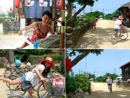 part2 >> part3 >> part4 >> part5 >> part6 >> 西表用ミュージックはここをくりっく! 西表ファイナルぅー。 長かった。 最終日の前日、 西表を後にしてmomiが絶対おすすめという竹富島へ。 西表からも行けるけど、石垣からだと30分で行けるので、朝早く石垣島へ。 安い素泊まり宿にチェックインして、 いざフェリーで竹富島へ♪ まさに沖縄。 まぁ、観光地用に再構築したらしいけど、それでも素敵。 この特徴的な石垣が石垣島の由来かなぁ。。。 まずはレンタルママチャリ。 久々のちゃりんこが強い日差しとぬる〜い風で気持ちいいぃぃぃぃんだよ。 この街並。 見たことあるでしょ? momiとmikiは美しいビーチへ行きたい!と言って、 reynarはダラダラしたいと言って 俺とminaは相変わらず、海よりも探検!と言う。 みんな好き勝手w じゃ!と待ち合わせを決めて(笑) 道ばたに咲く、三角形で紫の葉っぱを持つお花を発見。 うーん。かわいい。光合成できるのかなぁ。。。 またまた発見。 こういうお花を見つけることが、自分にとってどれだけ大切なことか! もうわくわくしちゃう。 植物ってすごいよね。 生命力もデザインも、本当によく考えられてる。 もの凄い生存競争の果てに行き着いた、それぞれの色とカタチ。 途中、お店に立ち寄り、 店主に「地元の人しかあまり行かない素敵な場所はないですか?」と聞く。 すると、「あぁ、蝶の小道があるよ」 (≧▽≦)人(≧▽≦)ノやったーーーーー! 早速。。 自転車で行くと、うーん。 あまり居ないねぇ。と話していると。 ヒラヒラヒラヒラ。 ん!? 自転車が止まると静かになって、飛びまくる! 見てみて!女の子にめっちゃ言い寄ってる(笑) まだまだ一杯。 そこには小さなドラマが次々と起こってる。 僕らは知らないことばかりだ。 改めて想う。 本当に子供の頃、いろんな虫を捕まえて遊んでいた頃を思い出す。 沖縄にはいろいろなものがあった。 自分にとってなんだかとても大切なものもあった気がする。 虫達と逢えて、向こうで住んでいる友達に会えて、 新しい仲間達とも逢えて、そこでもno.9を聞いてくれている人たちが居る。 みんなの日常に何かしらの影響を与えて。 最終日、那覇経由で6時間もあったので、 minaとカフェを巡ったけど、東京からきたアツい心もってチャレンジしている人たちが居た。 良い時間を提供するために、なんだかうらやましくなる生活をしている人たちが居た。 なんだか なんで音楽を創っているのか、見えた気がした。 よっしぃ、鈴木君、誘ってくれて本当にありがとう。 行って本当に良かった。 また、がんばっちゃいます! part1 >>