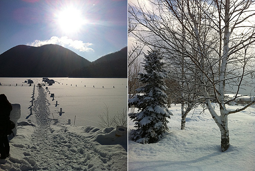 行ってきました、北海道。 ほんとにほんとに素晴らしい大自然と人に囲まれた旅でした。 生牛ことJunくん、ありがとう。 目的地は然別湖コタン。 国立公園の南端に位置する然別湖は、この時期、湖一面が厚い氷に覆われ、 湖上にコタンという氷の村が出来るのです。 気温は氷点下10度。 生まれて初めての北海道で、初めての氷点下10度。 どんなもんか!?と思いきや、 想像よりも遥かに暖かい。(暖かいではなく、寒くないというべきか?) 風が吹くと、もちろん痛いほど寒いんだけど、 しっかりと防寒しているのと、 雪の温かみで、それほど寒さは感じない。 雨の東京の方が間違いなく寒いと感じる。 コタンにはバーがあり、 ホールがあり、 チャペルがあり、 ホテルがあり、 温泉がありと様々な施設が創られている。 僕と一緒に行った映像のmichiくんは、 BARに併設されたホールで映像とDJのショーをやるために行ったのです。 ホテルに着くやいなや、 入り口やエレベーター、宴会場など至る所に僕らの写真付きポスターがぁ(笑) 冬の森のコンサートと書かれている…(´〜`ゞ ホテルのお客さんなんかにも「今夜コンサート楽しみにしてるわね♪」なんて、 声をかけられつつ、内心「DJなんですが…?」とみんなの期待に応える自信が無いw。 しかし、そこはさすが数々の修羅場をくぐり抜けてきた映像作家michiくんの機転で、 氷のホールを急遽マッピングすることに。 下の写真は、後ろから証明をあてているのではなく、 michiくんがドームの模様を記録(マッピング)して、 模様に添って映像があたるようにしているのです。 すごいでしょ?w DJ中の映像が無いので、説明するけど、 このラインにだけ光が出たり、上下に揺れたりしつつ、 次の写真のように全体に映像を映し出したりすることで、 空間全体を演出しつつ、音楽と同期を計るという。 僕はこの映像の中央でDJをしたわけですが、 ほんと、もうmichiくんが居なかったらと思うとゾっとします(笑) お客さんは20時の開演からDJ中の1時間、 ずっと座って鑑賞してくれたわけですが、 最後の拍手をいただいた時、ほんと嬉しかったな。 すっごい寒い中、座ってDJを聞いてくれるなんて大変だったんじゃないかなぁ。 しかし、この氷のドーム。 音がなかなか素敵に響くんです。 だから前半は光を意識して、 大好きなsoraとかmergrimとかametsubとか電子の粒子がはっきりしたエレクトロニカをふんだんに混ぜつつ、徐々にメロディー性の強い音楽へと移行していくDJを心がけました。 キラキラとして、僕もやっていてとても楽しかったです。 そういえば、北海道というか本当に寒い所の雪の音がすごいんです。 東京でもたまに鳴くけど、もっとサラサラでフワフワの雪が積もった上を 歩いていると本当に良く鳴くんですね。 録音したので聞いてみてください。 北海道 然別の雪 by no.9 次の日、 僕が北海道で最も行きたい街、富良野へ連れて行ってもらいました。 富良野といえば『北の国から』をはじめとする倉本聰さんの世界。 子供の頃から大好きで、一度あの『優しい時間』を感じてみたかったんです。 本当に静かで、 壮大で、豊かな大地と、どこまでも続く空。 途中の小川でも録音してみました。 富良野の風とせせらぎです。 北海道 富良野の風と川 by no.9 他にも北海道の幸、海鮮食べたり、牧場のピザ食べたり、 ラーメン食べたり、時計台に行ったりして、 三昧な時間を過ごさせてもらっちゃいました。 こんな素晴らしい企画をたててくれた蟲の響つながりのJunくん、 本当に本当に心から、ありがとう。 一生忘れないよ! そして、同行してくれたmichiくん、 向こうで合流してくれたコウセイとミホちゃん、 ありがとうね。 最後にほんと静かに降り続ける雪の映像も撮ってきました。 また行こう!!!!! Tweet PR part1 >>