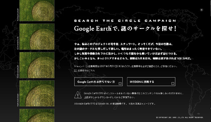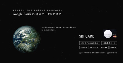 西表はおいといて、 作曲で携わった素敵なサイトの紹介です。 Soft Bankが提供する SBI CARDというクレジットカードのサイトで本日より素敵なキャンペーンが始まりました。 R25や電車の中吊りでも話題のこのキャンペーン。 『Google Earthでミッションをクリアせよ!』 Google Earthと提携した現代の画期的なこのキャンペーンは、 謎めいたヒントをたどって、地球上のどこかにあるミステリーサークルを探すというもの。 Xファイルやブレアウィッチのような緊張感と、 壮大なスケールがそそります。 ヒントをたどってクライマックスに近づけば、 映画音楽ばりの気合いの入った音楽も聴けますので、ぜひ参加してくださいね。 あ、100万円当たるそうなので、当たったら分けてね♪ ぜひお試しあれ! もう一つは、オリックス不動産2007. 昨年もやらせていただいたこちらのネット不動産はこれからどんどん凄くなるはず。 毎回10曲近く制作しています。 PR おはよー♪